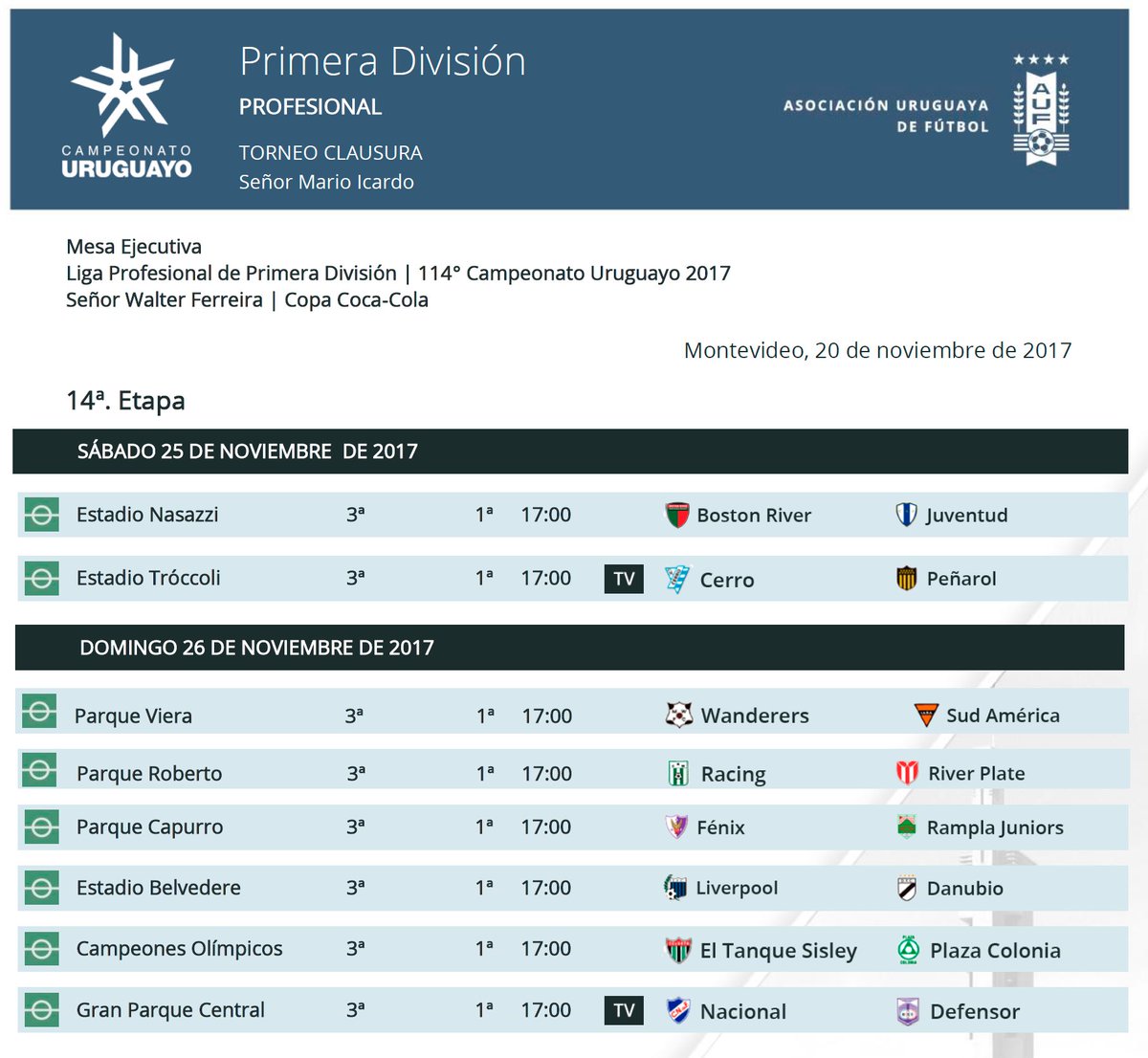 Tabla primera división de uruguay la máxima categoría del país es el denominado campeonato uruguayo, organizada por la asociación uruguaya de fútbol, su debut como liga profesional fue en 1932, aunque desde 1900 ya se habian jugado algunos partidos amateurs primera division uruguay. Besides primera division scores you can follow 1000+ football competitions from 90+ countries around the world on flashscore.com.